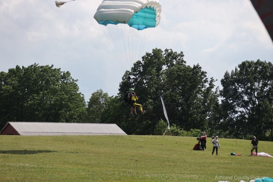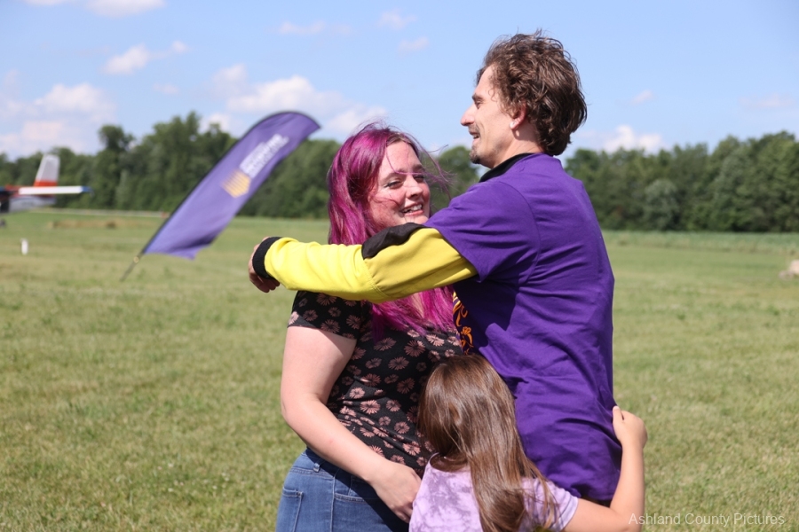 It wasn’t just a casual leap, either. After several postponements, this jump was the fourth attempt, and as David put it, “the fourth time’s the charm.” The skies cleared, the wind calmed, and the stars aligned for the daredevil duo to finally take flight with instructor Dereck Dittman of Aerohio Skydiving, with outside video and photo coverage from Sherry and Andrew Butcher.