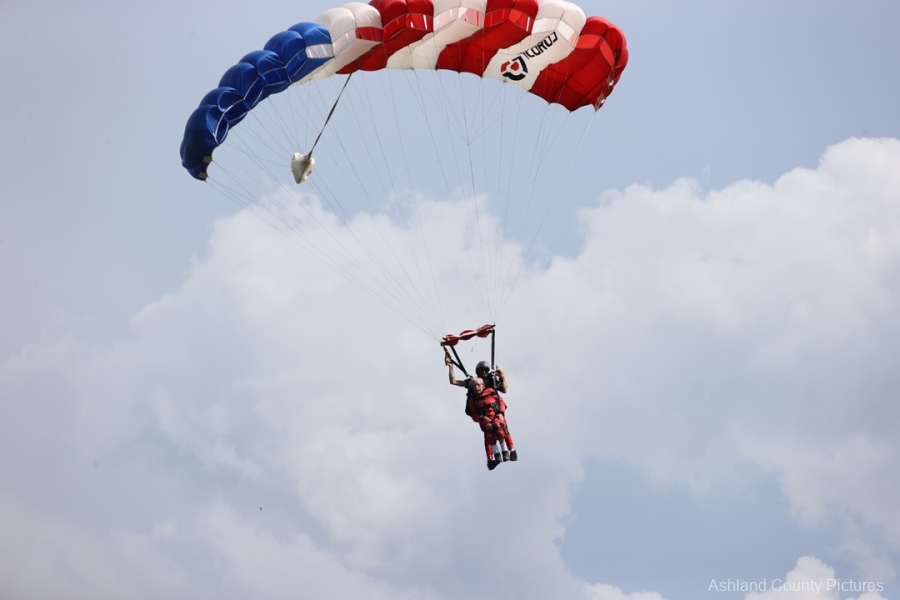 Friends, family, a battalion of proud veterans, Ashland’s local heroes, and a slew of dignitaries including State Representative Melanie Miller, Ashland Mayor Matt Miller, Ashland County Sheriff Kurt J. Schneider along with Former Sheriff E. Wayne Risner gathered at the Ashland County Airport to cheer on Jeziorski as he suited up to do what most people are still too scared to do.