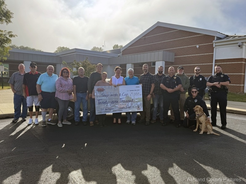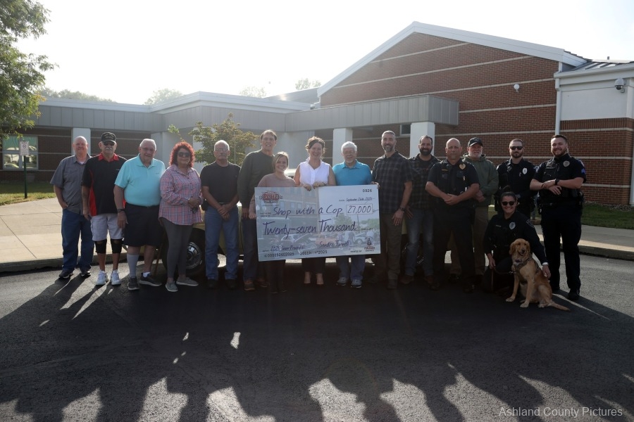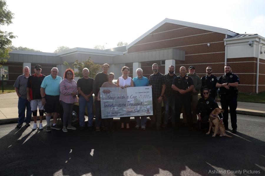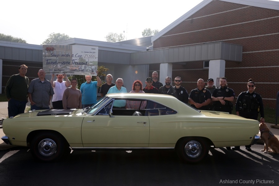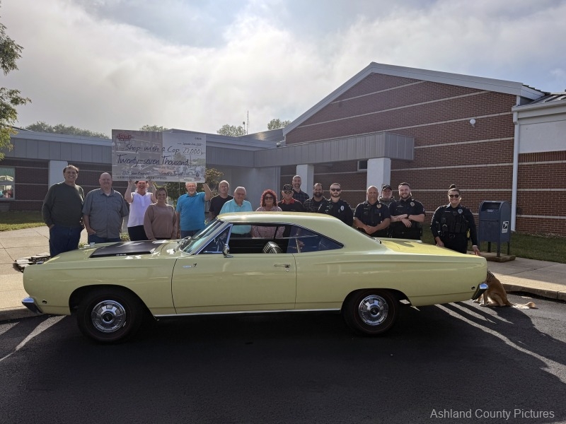 ASHLAND — The rumble of engines and the sparkle of chrome weren’t present this morning, but the spirit of the Ashland Downtown Dream Cruise and Car Show was alive and well at the Ashland Police Division. Members of the car show committee gathered to present a $27,000 check to Detective Kara Pearce in support of the Shop with a Cop program — and to honor the memory of their beloved co-founder, Kenny Heyl.