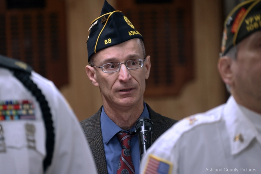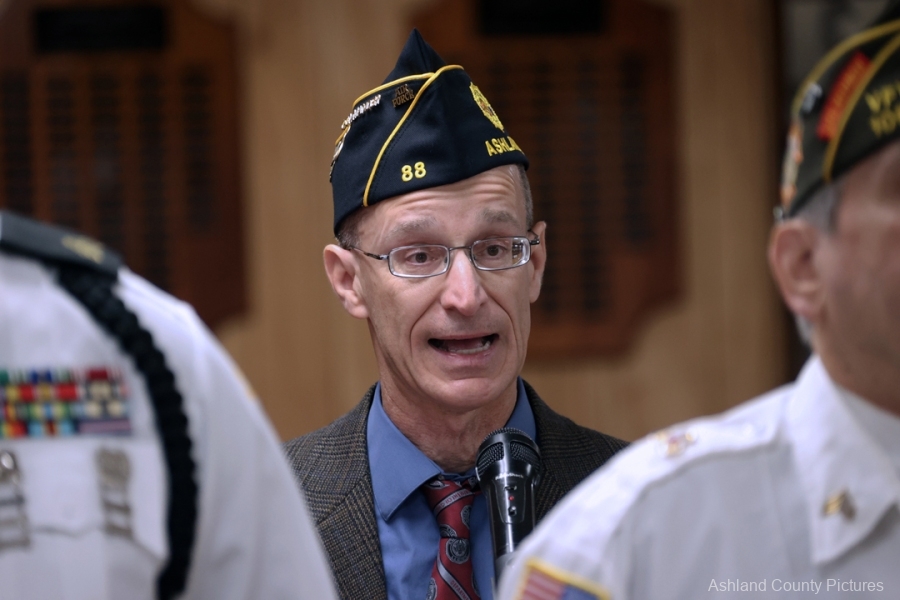 ASHLAND — Under crisp November skies, community members gathered Tuesday morning at the Harry Higgins Post 88 American Legion on Claremont Avenue, where Post Commander David Abbruzzese delivered a moving and deeply reflective address during the annual Veterans Day Memorial Service.