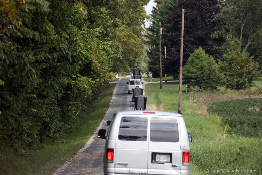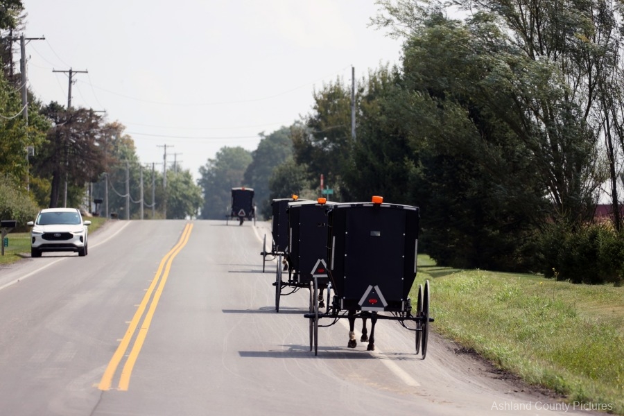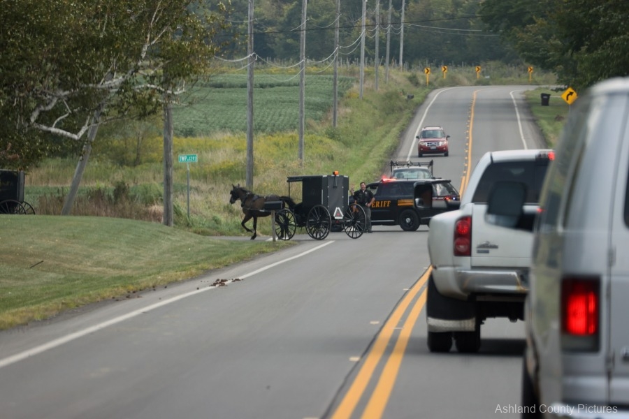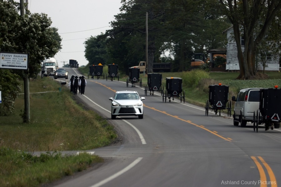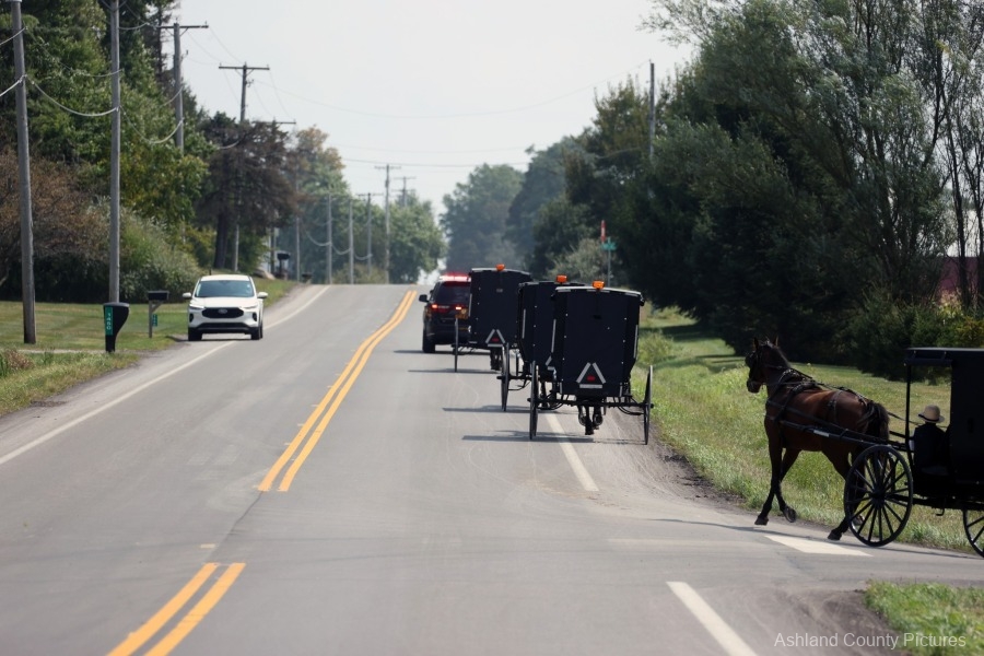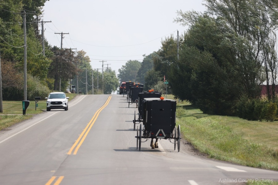 This afternoon, State Route 96 was lined with quiet patience as the Ashland County Sheriff’s Office assisted in guiding a long convoy of black Amish buggies, passenger vans filled with extended family, and even groups of walkers. They made their way slowly toward Township Road 1293, before turning left and climbing a gentle incline to a small, secluded Amish graveyard.