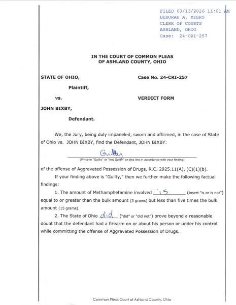 After deliberations, the jury returned a verdict finding Bixby guilty of Aggravated Possession of Drugs, a third-degree felony, in violation of Ohio Revised Code 2925.11(A), (C)(1)(B). Jurors also found Bixby guilty of a one-year firearm specification under R.C. 2941.141(A).