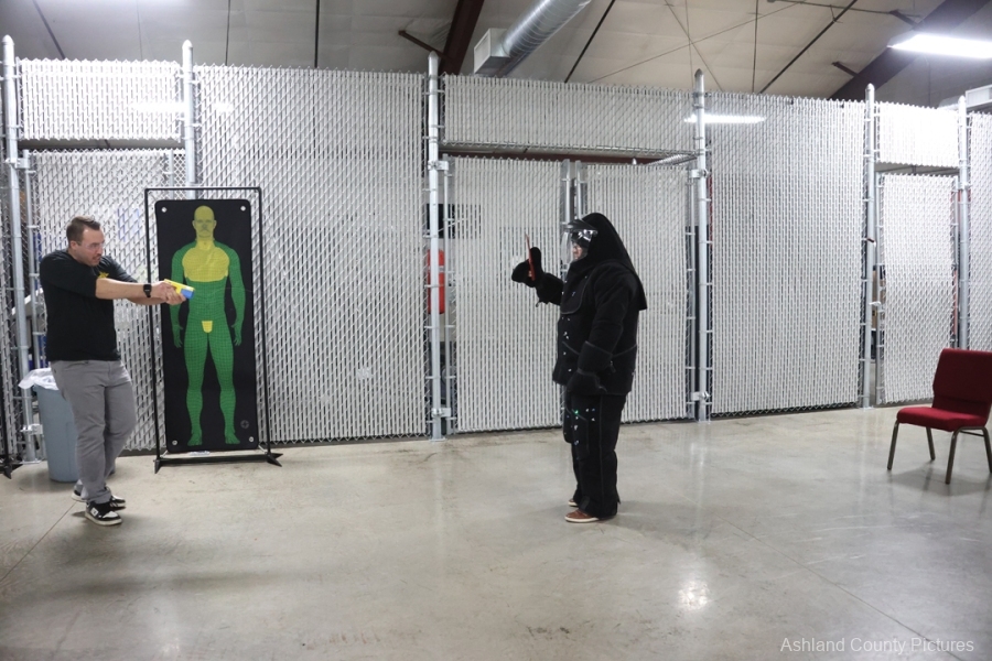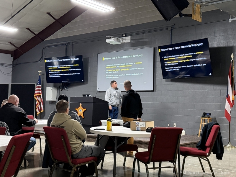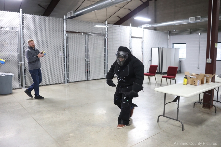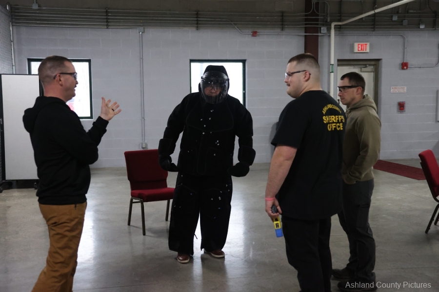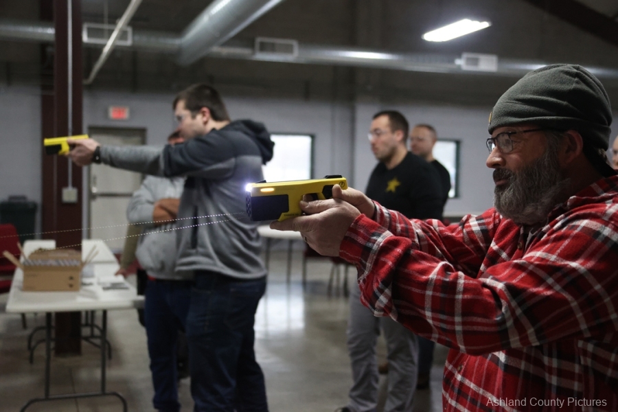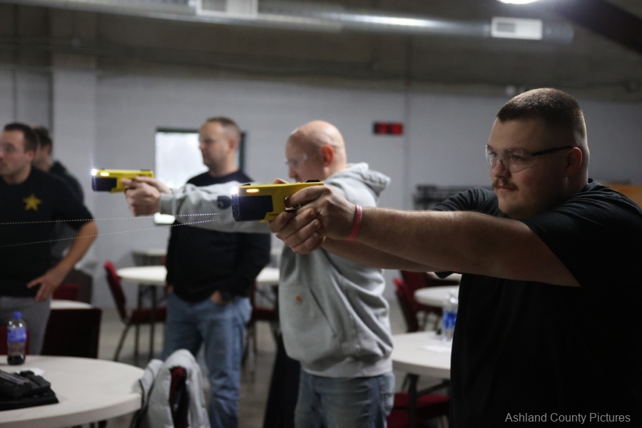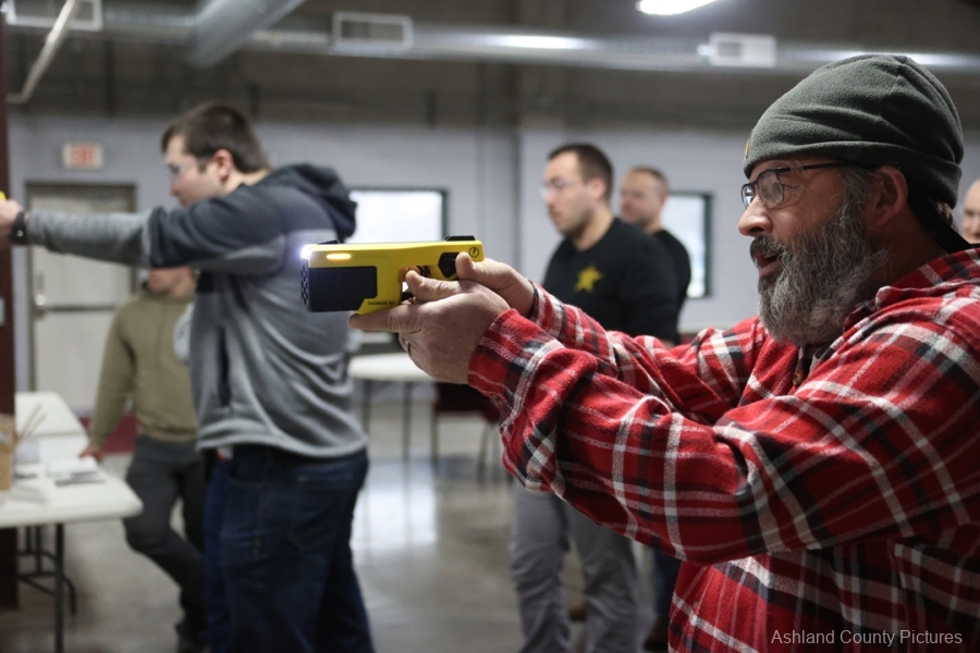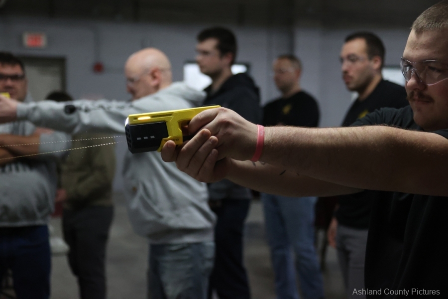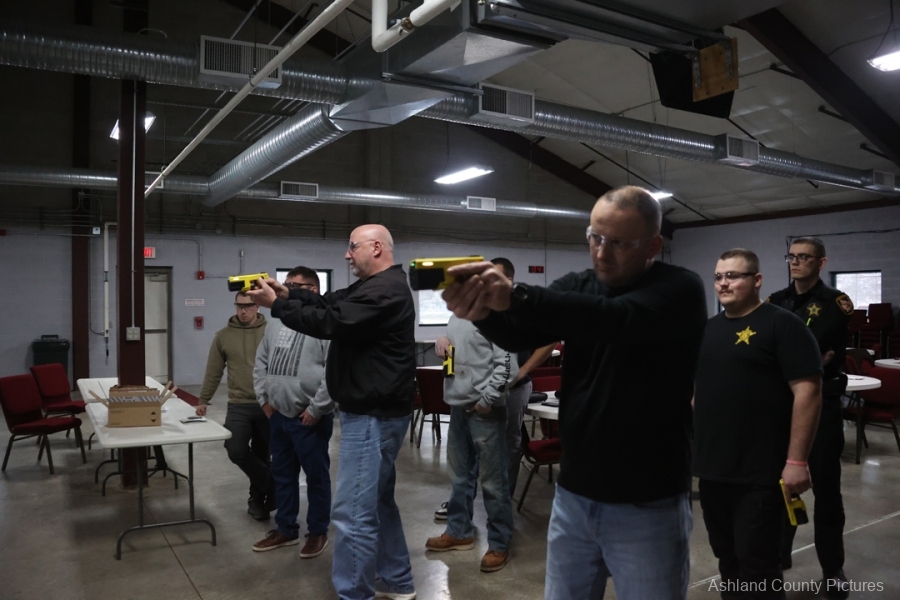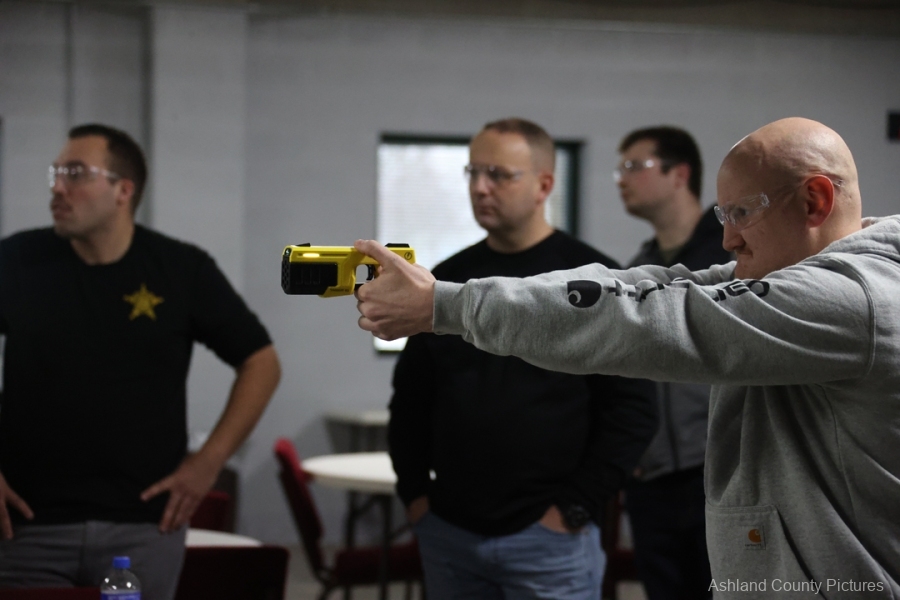 ASHLAND COUNTY — The sharp command of “TASER, TASER, TASER” echoed across the training area well into Saturday afternoon as Ashland County Sheriff’s Office deputies and corrections officers spent Saturday in hands-on training with the department’s newest less-lethal tool, the TASER 10 Energy Weapon, following approval of the equipment by Ashland County Commissioners that was purchase by the Samaritan Foundation.