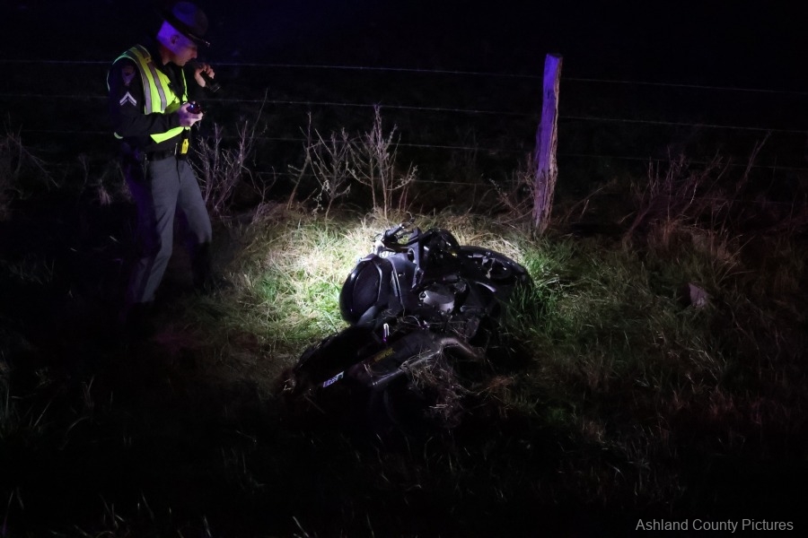 According to the Ashland Post of the Ohio State Highway Patrol, the crash occurred around 7:56 p.m. when a 2013 BMW motorcycle, driven by Logan Webb, 19, of Ashland, was traveling eastbound on State Route 96. Troopers say Webb went left of center, traveled off the left side of the roadway, struck a ditch, and was ejected from the motorcycle.