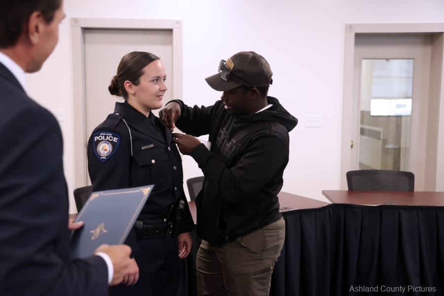 Morgan Shilliday began her career with the Ashland Police Division several years ago, serving in the Records Bureau and later as secretary in the Detective Bureau. Chief Lay noted that it has been decades since an employee from dispatch or records transitioned to becoming a certified peace officer.