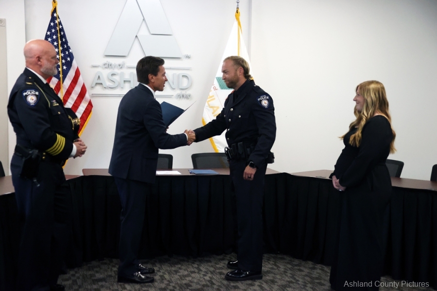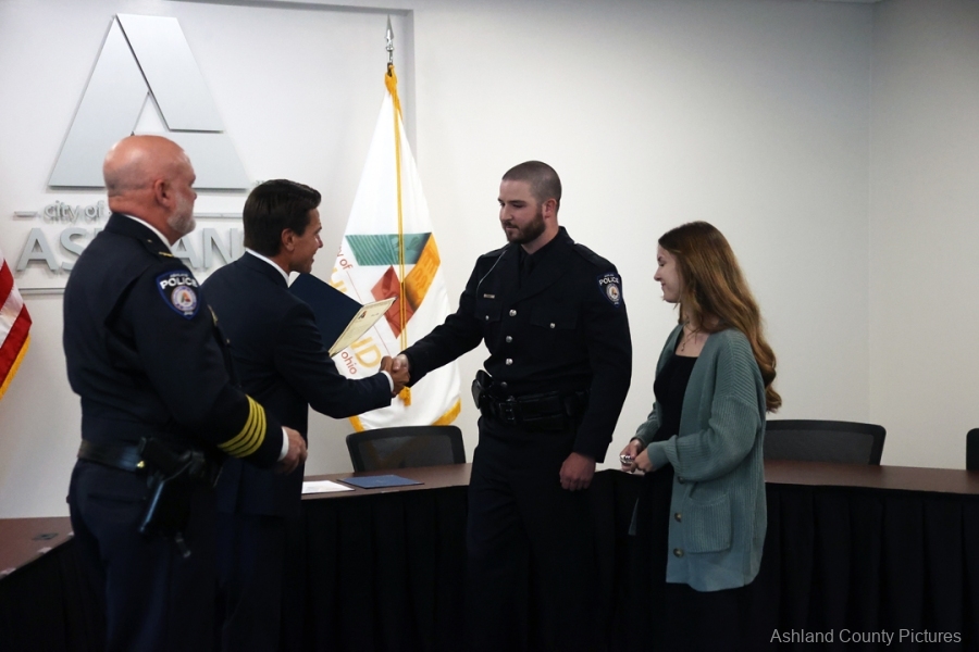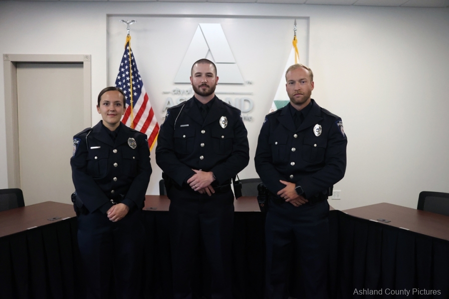 ASHLAND – With friends, family, and fellow officers filling Ashland City Council chambers, Mayor Matt Miller swore in three new members of the Ashland Division of Police on Wednesday morning, September 10, 2025.
