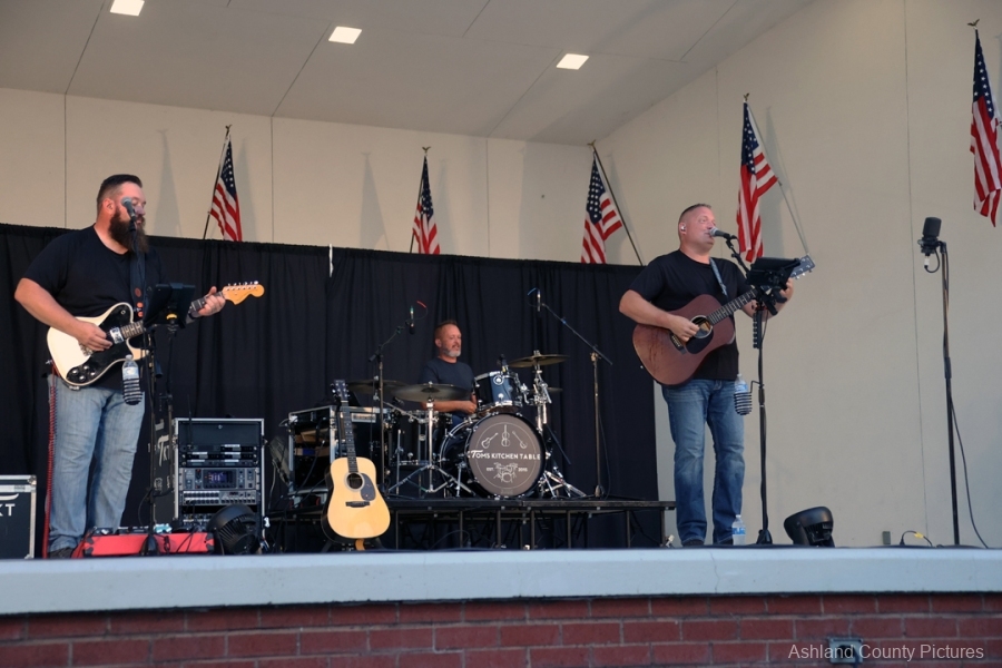 ASHLAND, OH – Ashland, Ohio’s hometown stars, Tom’s Kitchen Table – the powerhouse 4-man band affectionately known as “TKT” – lit up the Guy C. Myers Memorial Band Shell this weekend with a night that will be talked about all summer long.
