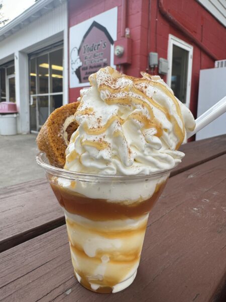 But the real gut-punch? The now-famous Pumpkin Roll Sundae. It’s not your average fall dessert. Picture it: a swirl of vanilla ice cream, a caramel racetrack spun around the cup like a NASCAR for sugar addicts, a fluffy mountain of whipped cream, and then—out of nowhere—a whole slab of pumpkin roll just casually laying there like it owns the place. Locals describe it as “sweet sin on a spoon” and “the best scandal in Ashland since someone tried to pass off margarine at the county fair.”
