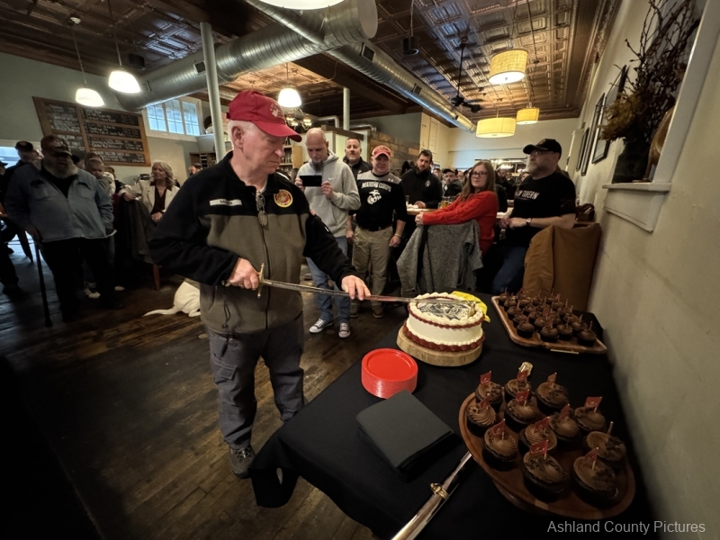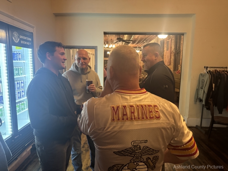 ASHLAND — On a crisp November evening, the sound of laughter, clinking glasses, more than a few hearty “Oorahs!” filled the air inside Uniontown Brewery. Though the doors are normally closed on Mondays, they swung open today for a special reason — to celebrate 250 years of the United States Marine Corps.