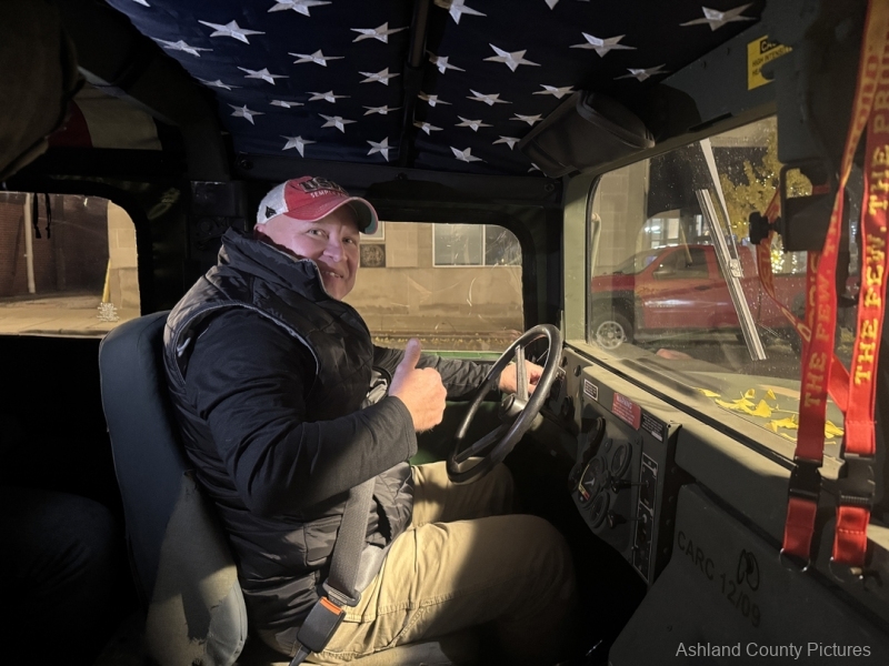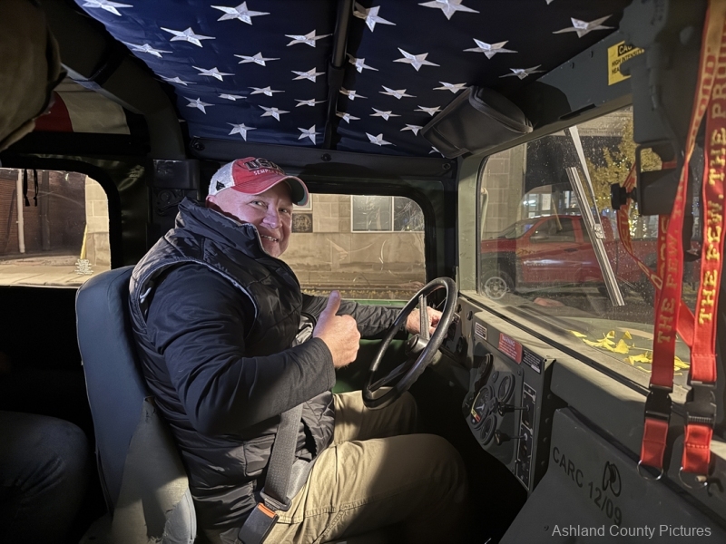 “This is my first year celebrating the Marine Corps birthday right here in my hometown,” said Tim Maust, a local Marine veteran who arrived in his 1999 Humvee H1. “It’s a long-honored tradition. We find the youngest Marine and the oldest Marine, and we do our cake-cutting ceremony — just like we did in the field when I served.”