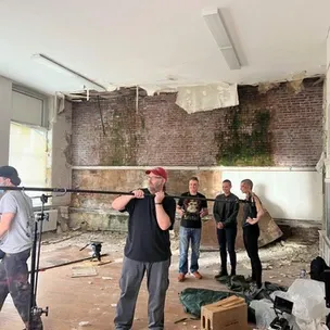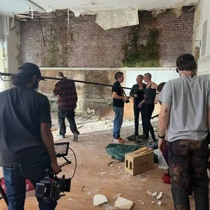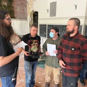 As I entered the school, the scene was terrifying, as the worm filled actress huddled on the floor against the old school room wall, at the Arthur Street School, in one of the emotional scenes, in Cranked Up film’s “WORMTOWN”.