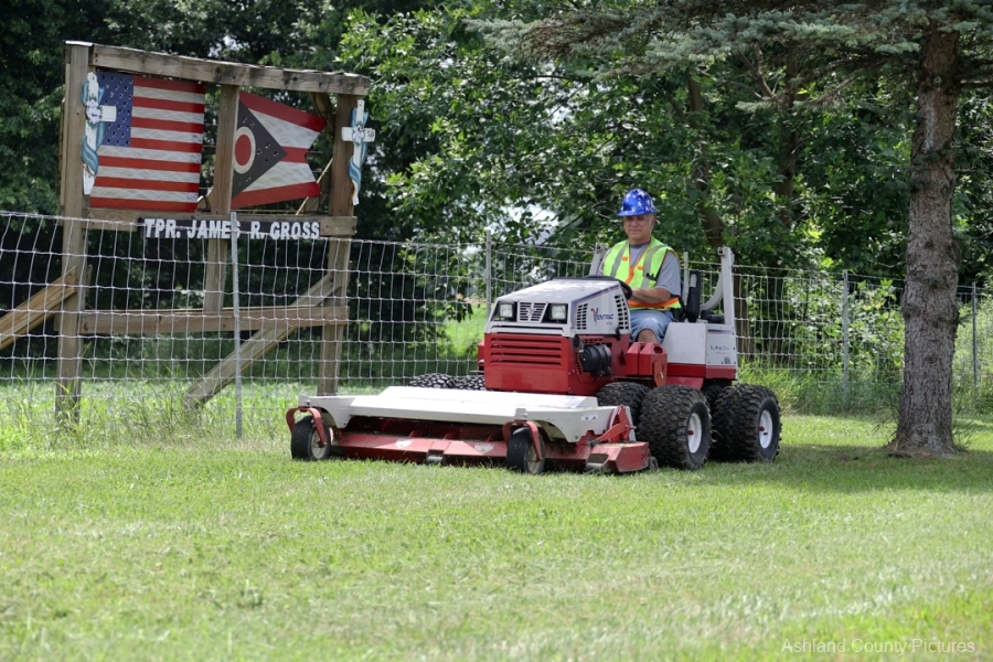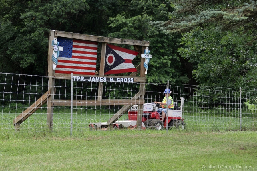 ASHLAND, OH — The sound of a mower hums softly along the northbound shoulder of Interstate 71, against the loud noises of the traffic passing near mile marker 190. In the midday heat, Dale LaRue—retired sergeant of the Ohio State Highway Patrol—leans into his work with quiet determination. For nearly three decades, he has been coming to this solemn stretch of highway, cutting grass, clearing brush, and preserving a memorial not only of stone and pine, but of a life cut short in the line of duty.