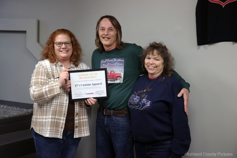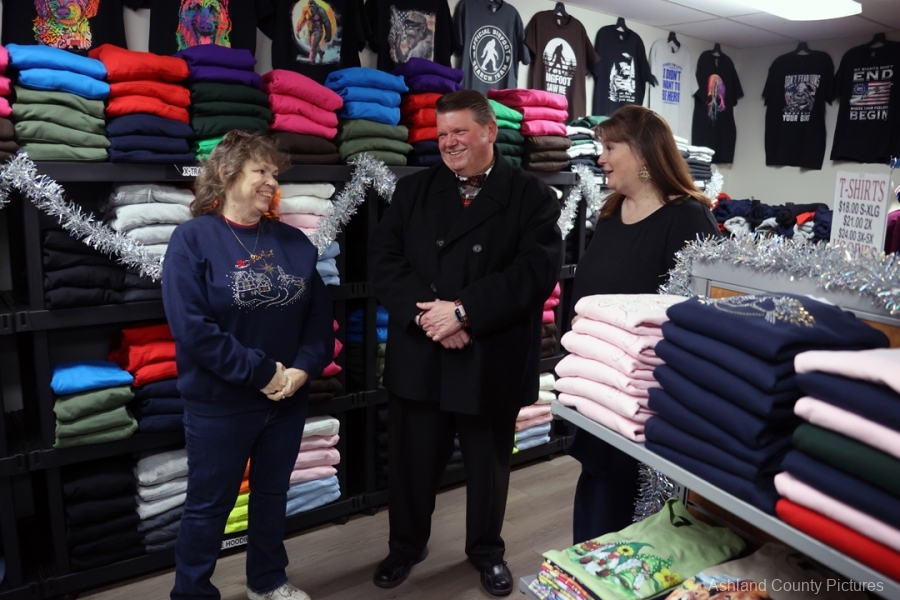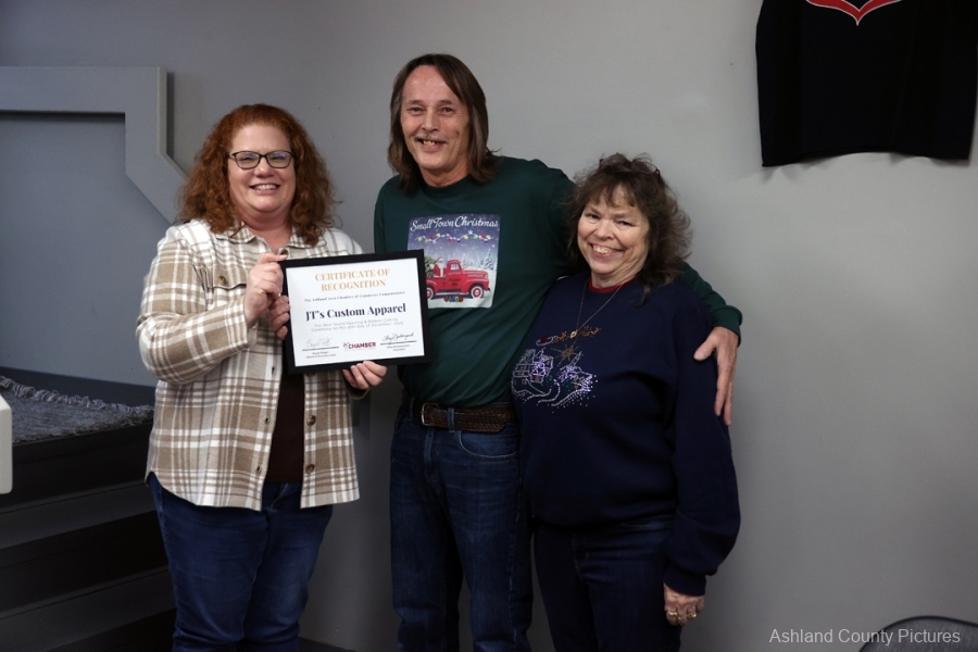 ASHLAND — The air outside may have been cold, but inside JT’s Custom Apparel the atmosphere was glowing with warmth and excitement as nearly 30 friends, family members, community leaders, and longtime customers gathered on Claremont Avenue to officially welcome the business to its new brick-and-mortar home at 615 Claremont Ave.