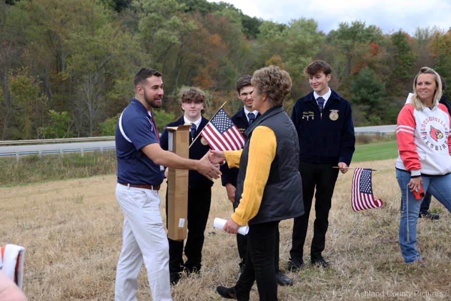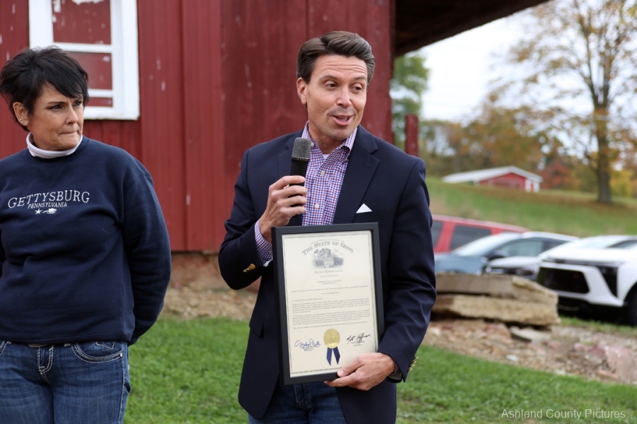Mayor Matt Miller—who co-chairs Ashland County’s America 250 committee—presented barn owners Rich and Tammy Kline with a proclamation on behalf of State Rep. Melanie Miller and Ohio House Speaker Matt Huffman, praising the family’s “Redbird spirit” and calling the mural a gift to Perrysville, Ashland County, and the Buckeye State. “When July 4, 2026 rolls around,” the mayor promised, “we’re going to have one heck of a birthday party in Ashland County.”