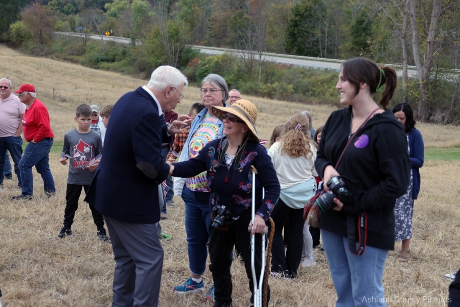 Former Ohio Governor Ted Strickland, a member of the America 250-Ohio Commission, drew the crowd’s gaze to the mural, the rolling fields, and the band, calling the day “one to rejoice in.” He saluted Chapman’s generosity and love of nature and reminded listeners that being American “with all the opportunities that gives us” is a profound blessing.
