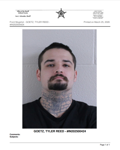 A January 5, 2026 report of a stolen vehicle in the 200 block of Middle Drive led to the indictment of Tyler Goetz, 26, of Ashland.