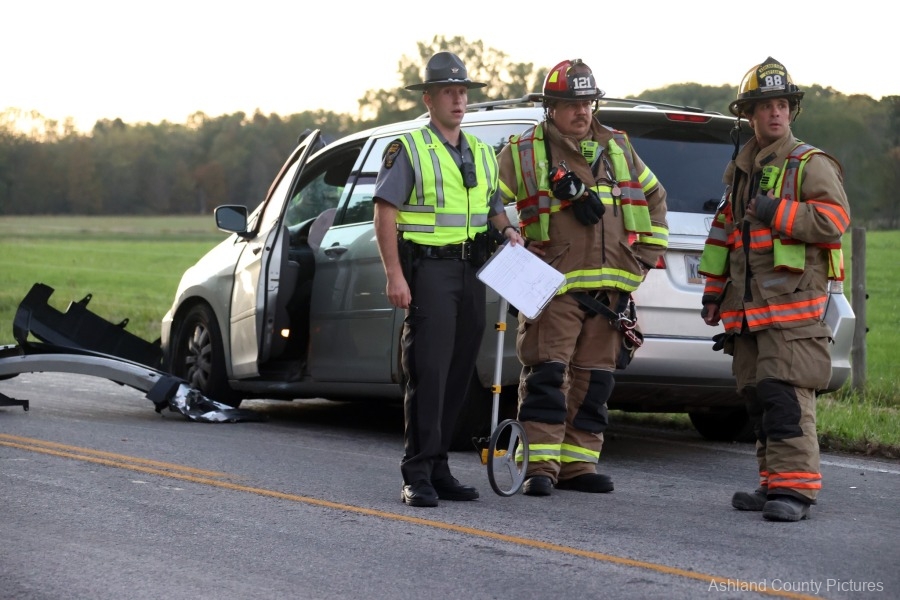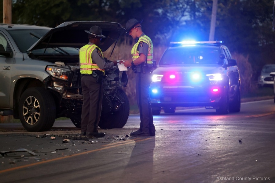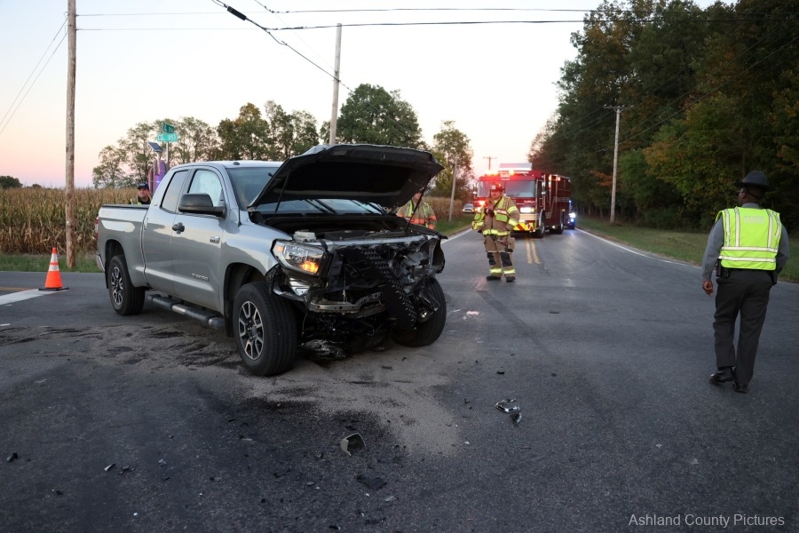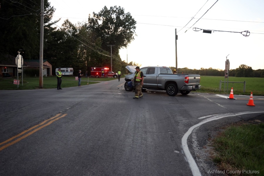 MILTON TOWNSHIP — Around 6:35 p.m. this evening, the Ohio State Highway Patrol, along with the Ashland Fire Department and EMS, responded to a two-vehicle crash at the intersection of Ashland County Road 1356 and Ashland County Road 1153.