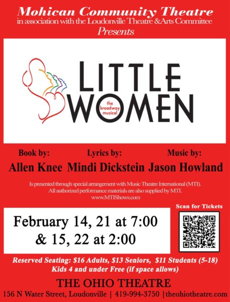 LOUDONVILLE — Mohican Community Theatre (MCT), under the Loudonville Theatre and Arts Committee (LTAC), will present the musical Little Women for four performances at The Ohio Theatre–Loudonville, opening on Valentine’s Day.