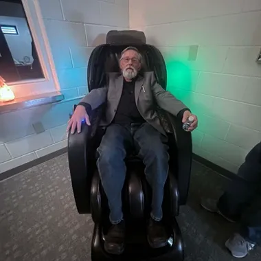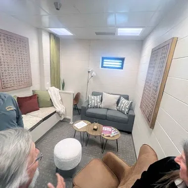 Designed as a haven for relaxation and rejuvenation, “The Resiliency Room” addresses the daily stressors faced by law enforcement personnel. In recognition of the long hours and intense pressures inherent in their roles, the foundation has transformed what once were holding cells into a tranquil retreat, complete with massage chair, cozy couches, and soothing fragrances.