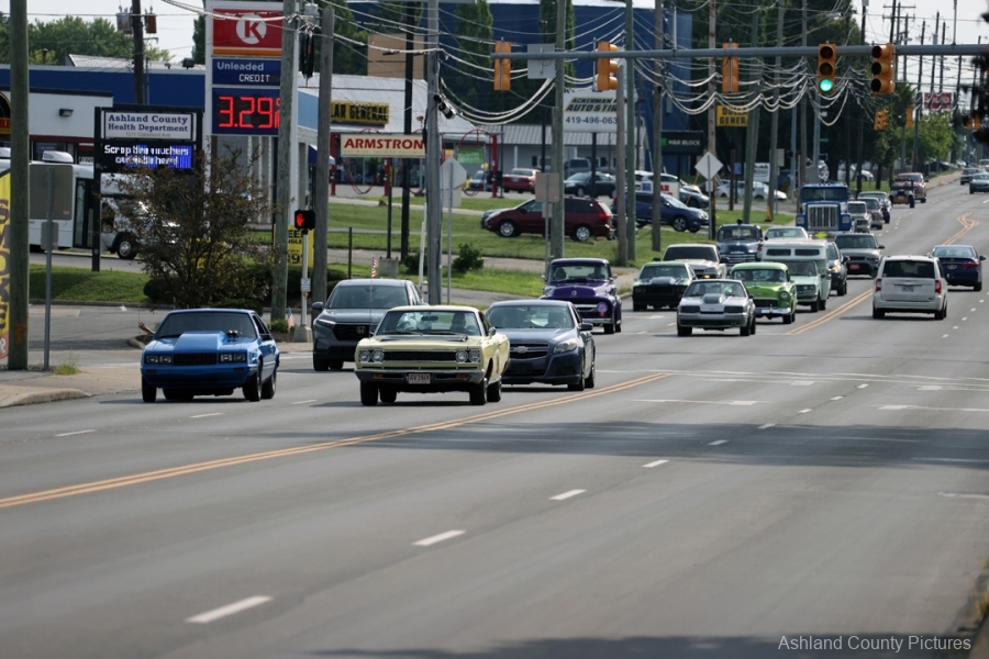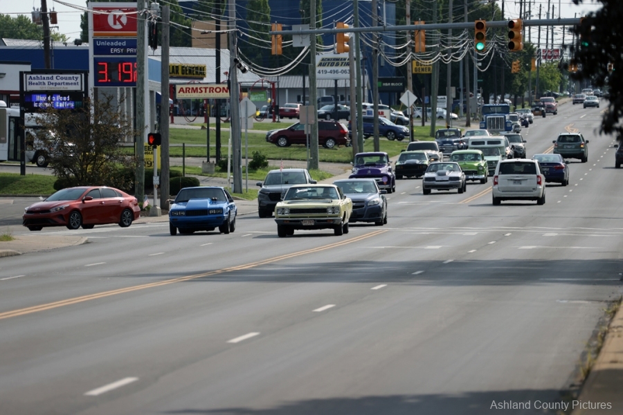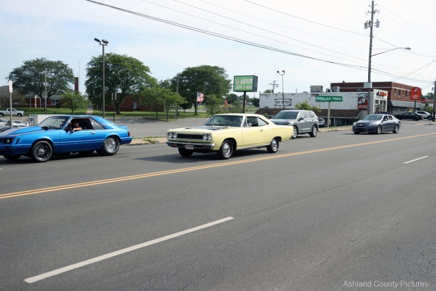 ASHLAND, OH — The rumble of engines, the gleam of chrome, and the unmistakable growl of muscle cars rolling down Claremont Avenue on Saturday evening weren’t just signs of another summer cruise night. They were something far deeper—a final ride, a moving tribute to a cherished man whose life was marked by horsepower, heart, and hometown pride.