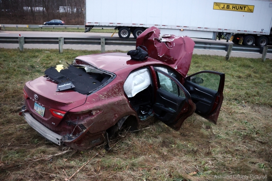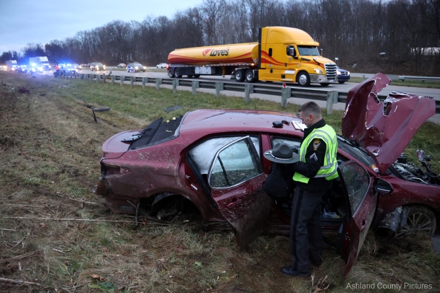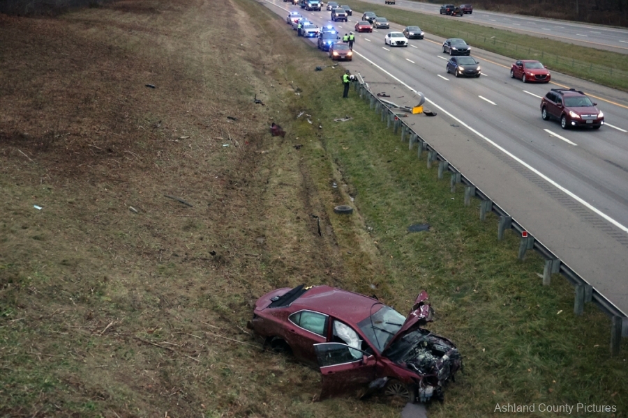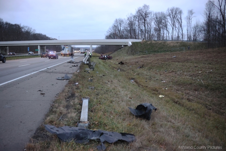 The crash occurred around 4 p.m. in the southbound lane of I-71 at the 189.4-mile marker, where a 2018 Toyota Camry driven by 31-year-old Kalvin Gross of Mansfield slammed into a guardrail after what troopers say was extremely reckless driving.