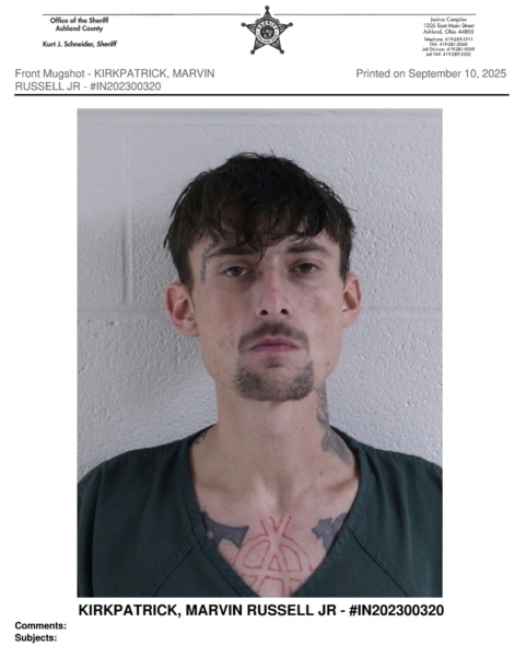 Kirkpatrick was arrested on September 9 for Probation Violation (Charge 5012 – Community Control) and is currently being held pending a hearing in Ashland County Common Pleas Court. If found guilty of the violations, the court may revoke his community control and impose a prison sentence for the original drug convictions, along with any new charges resulting from the search.