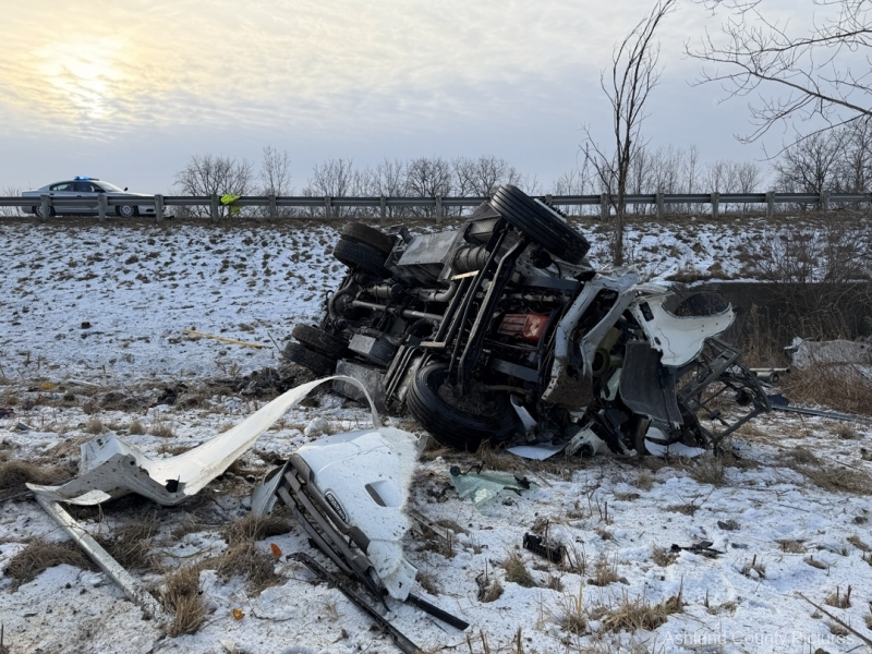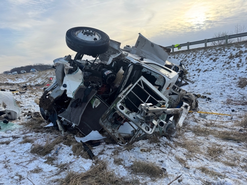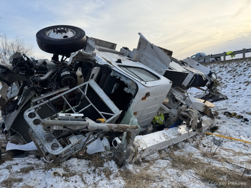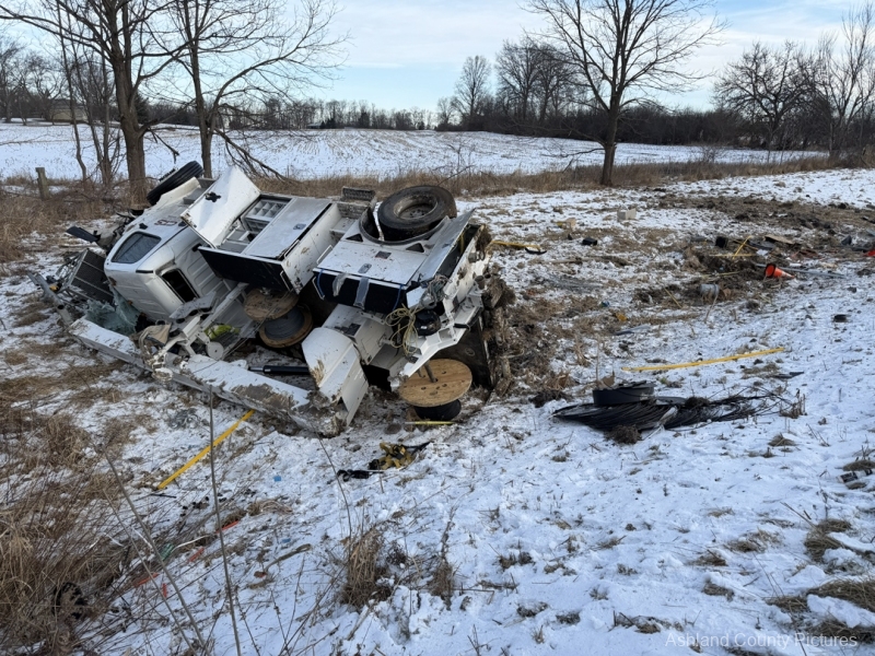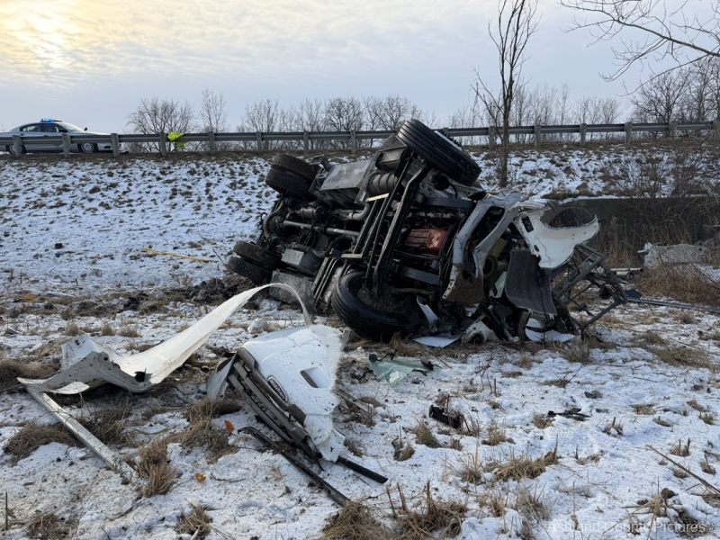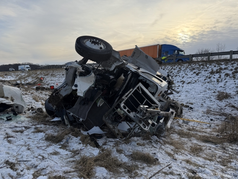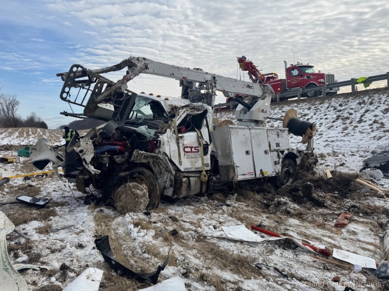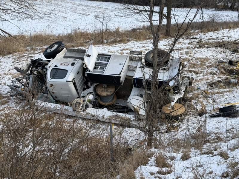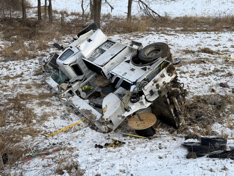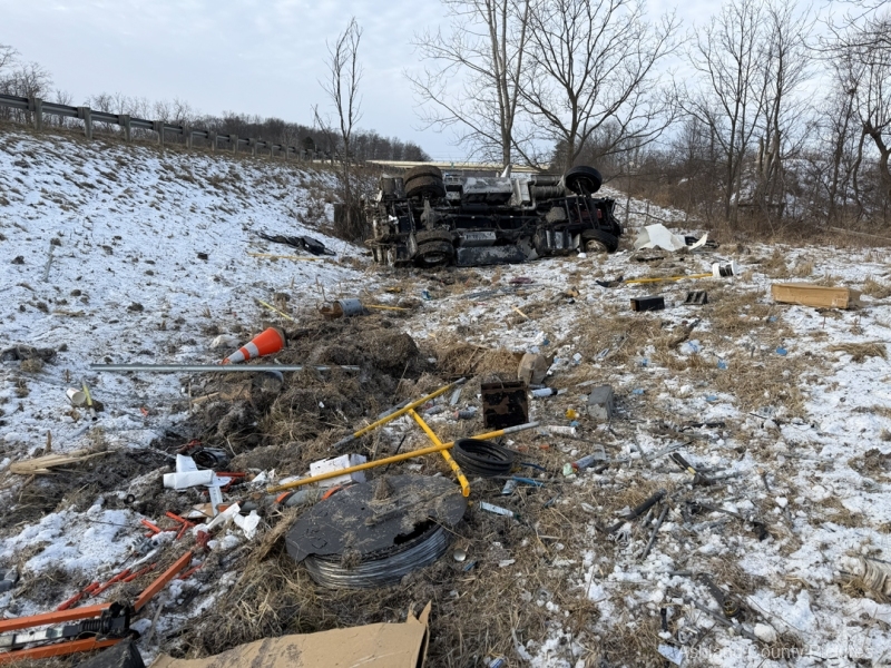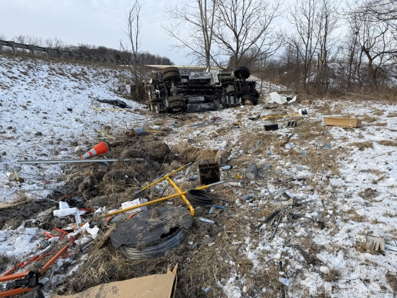 Investigators said a 2025 Freightliner, owned by CTS Telecommunications, was being driven southbound by Michael Ziolkowski, 31, of New Waterford, Ohio, when the vehicle went off the right side of the interstate. The Freightliner traveled through a guardrail, went down a ravine, and rolled over, coming to rest on its side.