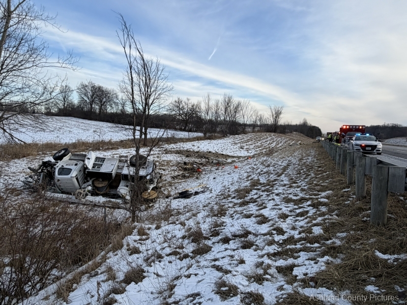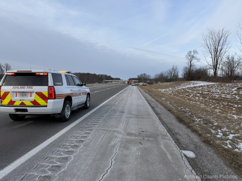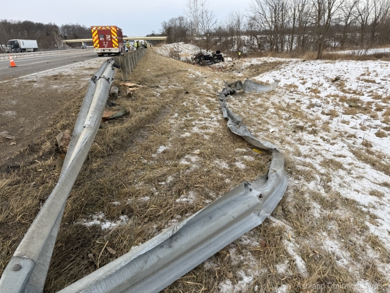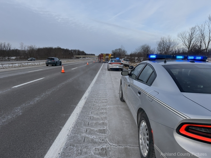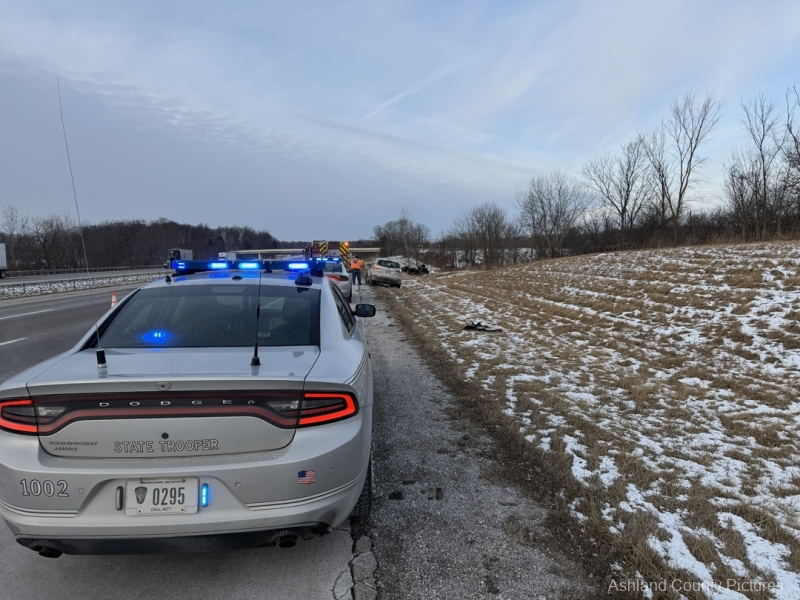 According to the Ohio State Highway Patrol, troopers were dispatched at 8:23 a.m. to the 183 mile marker on the southbound lanes of I-71 for a reported rollover crash. The Ashland Fire Department & EMS along with Aber’s Towing & Crane Service also responded to the scene.