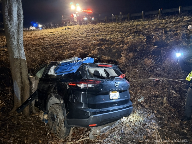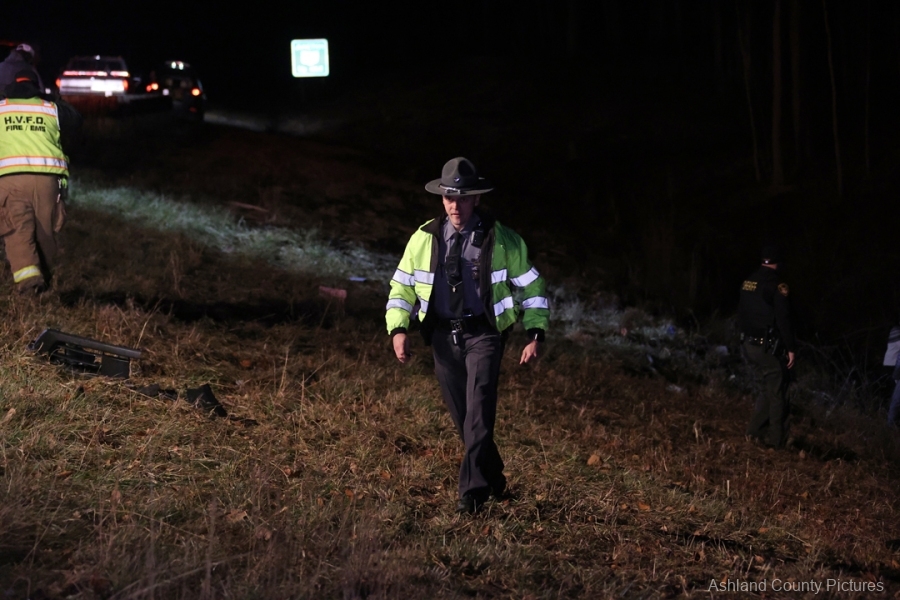 ASHLAND COUNTY — Ohio State Highway Patrol, Ashland County Sheriff’s Office, Hayesville Fire Department & EMS along with Mifflin Fire Department. responded to a single-vehicle rollover crash this evening along U.S. Route 30.