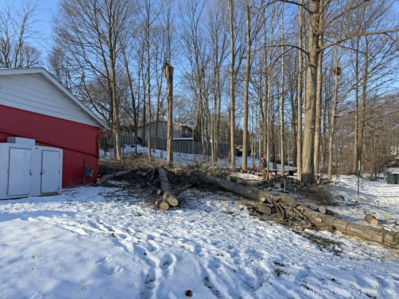 While the awesome ice cream stand is currently closed, there’s been buzz (and chainsaws) on the property. After hearing questions from the community about what was going on, I stopped by to take a look and found Young’s Tree Service hard at work, clearing trees behind the Red Barn.