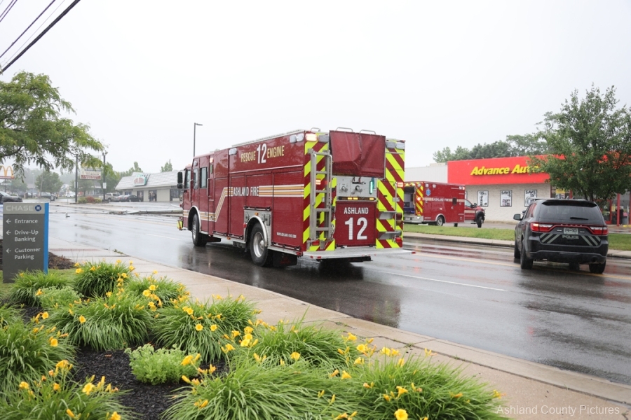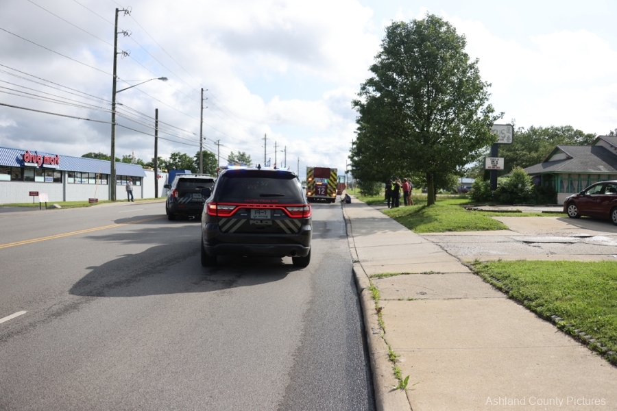 Ashland, Ohio – Ashland Police Division, along with the Ashland Fire Department & EMS were called to the scene of two serious incidents Thursday evening that brought traffic on Claremont Avenue to a standstill and sent at least one person to the hospital.