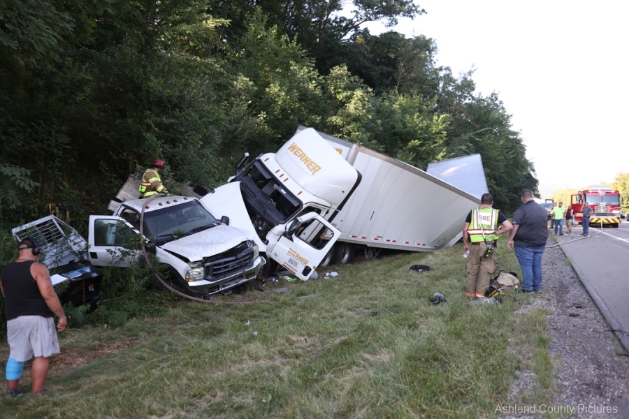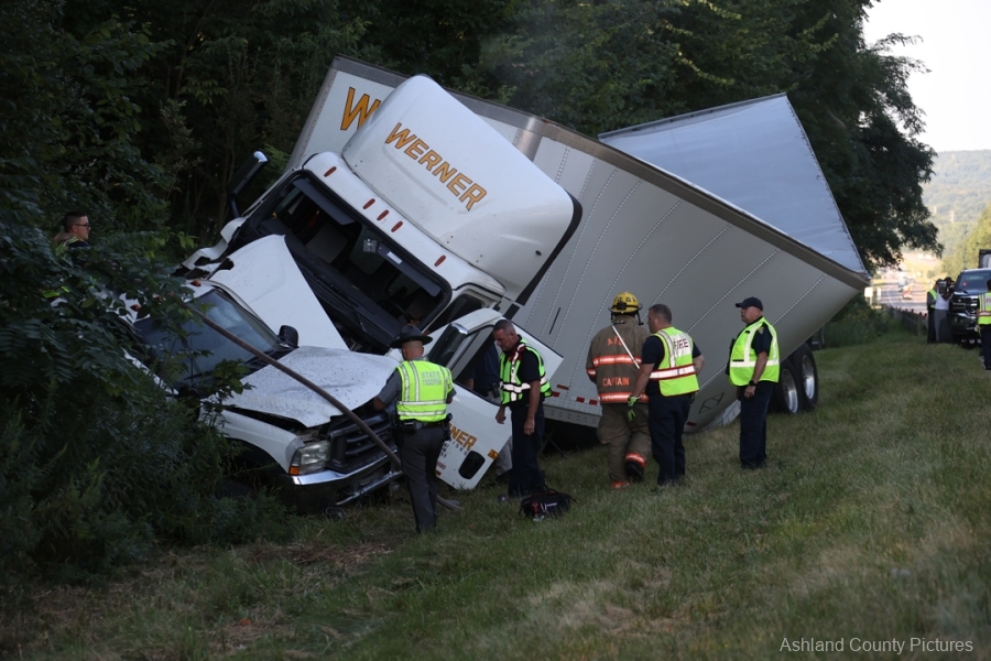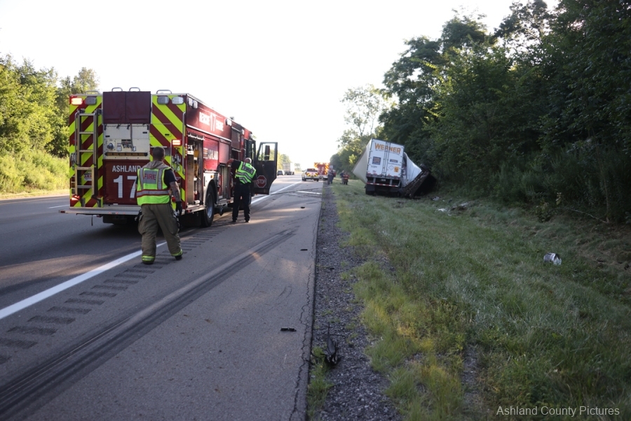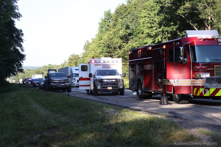 ASHLAND COUNTY, OH – A three-vehicle crash on Interstate 71 in Ashland County sent two people to the hospital Tuesday morning, according to the Ashland Post of the Ohio State Highway Patrol.