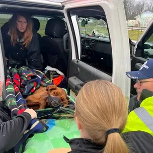 According to recent updates provided by the Humane Society of Ashland County Ohio, we are pleased to report that our four-legged friend, who was tragically struck on State Route 545 on December 18, 2023, is still under the attentive care of our friends at Claremont Veterinary Clinic.