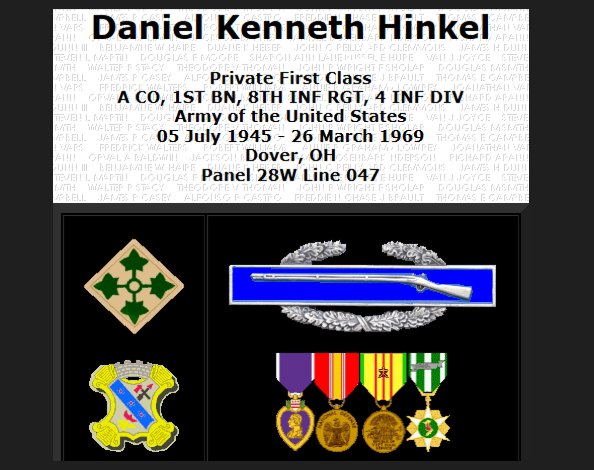 Miller reflected on March 26, 1969, the day 23-year-old Dan Hinkle was killed in action while serving with Company A, 1st Battalion, 8th Regiment, 4th Infantry Division.