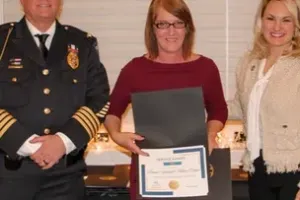At the start of the ceremony, Police Recruits Chelsie Betancourt and Soren Osicka were recognized for the successful completion of the core requirements for the Ohio Peace Officer Training Academy at North Central State College.